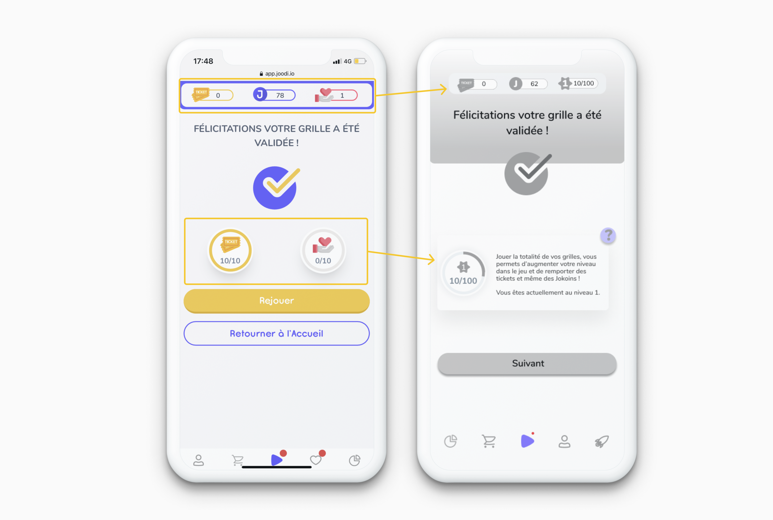 To encourage regular engagement and drive players to complete all 10 grids—both to increase their chances of winning and to unlock the ability to make a donation—I implemented a gamification system. Players can now track their level directly from the top bar.